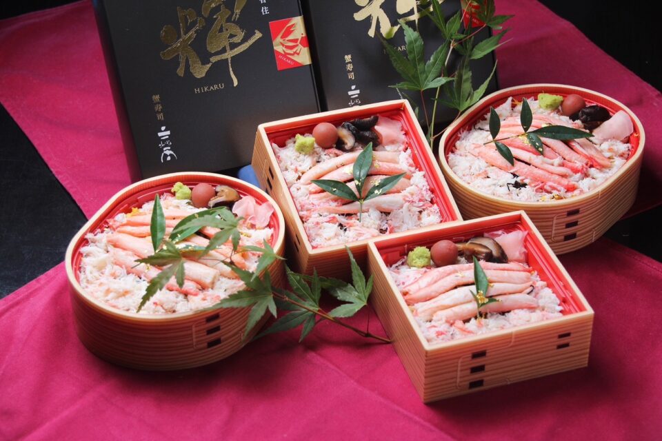 香住の名店”三宝”さんのカニ寿司をご用意いたします。